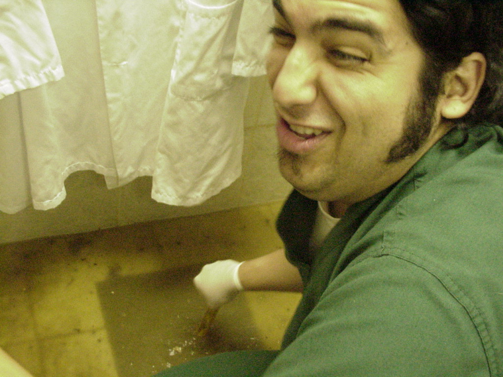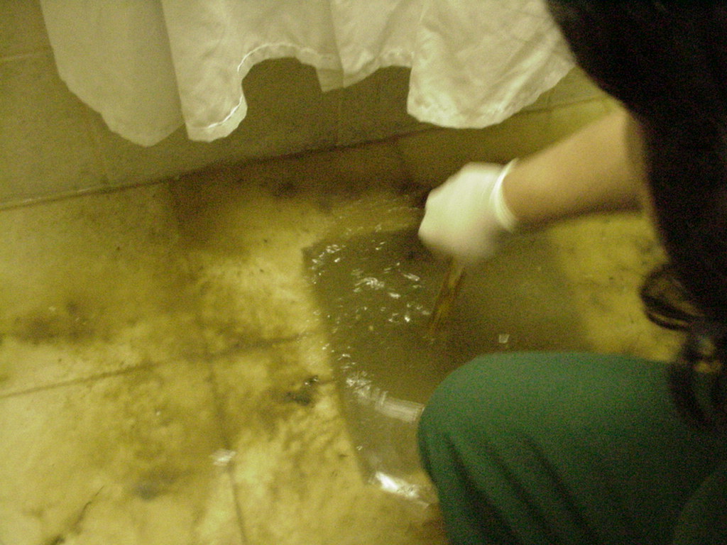 A clogged drain with floaties.                                    Plunging fool. Watch for the splash